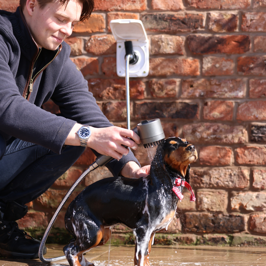 Hot & Cold Hose Kit: Control and find the right temperature coming from your own tap coming out into one shower head to wash your dog or horse. Super easy to set up taking a matter of seconds if you already have a hot and cold tap. Everything included. Used for both horses and dogs.